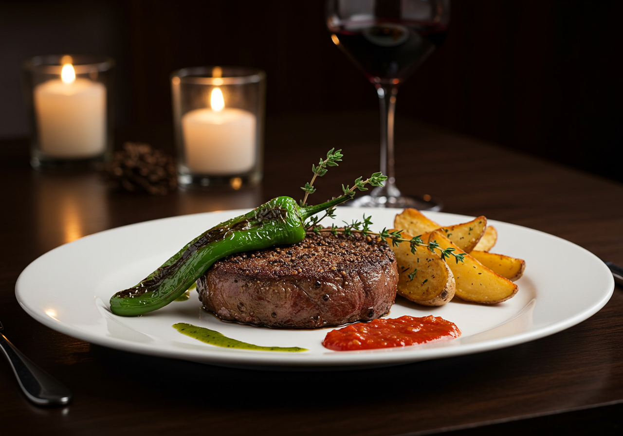 A classic romantic dinner destination with an industrial vibe. Cozy leather seating, carpeted floors, brick walls, a piano, and the fireplace create the perfect setting to enjoy the classic chophouse menu with a date. Many reviewers mention the atmosphere and excellent service, which can make or break a romantic dinner date. Many reviews mention how great it smells walking in, and that it’s a destination for dates, anniversary celebrations, and special events because of its romantic atmosphere.